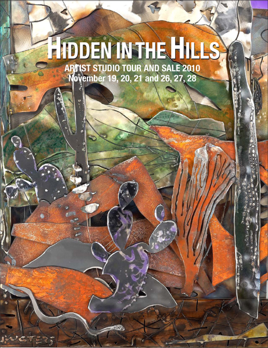 Each year the Sonoran Arts League has a call for art for the Directory cover. It’s been a few years since I’ve submitted. This year, I created a sculpture with this in mind—inspired by the mystery and light of the desert near Cave Creek. “Desert Light Shift” is layers of steel, hand cut and shaped, with patinas and heat coloring. (The work was not selected for the cover.)